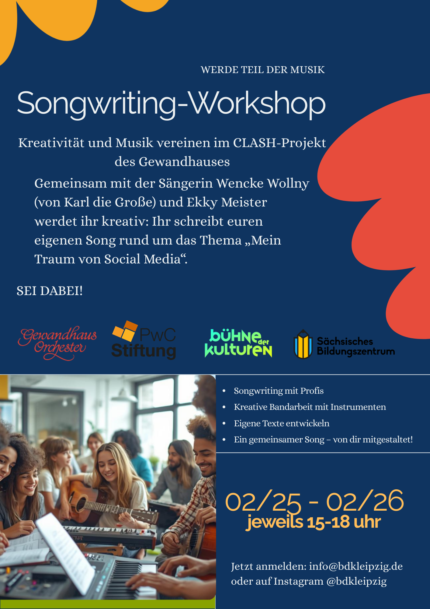 Dann mach mit bei unserem zweitägigen Songwriting-Workshop im Rahmen des CLASH-Projekts des Gewandhauses!